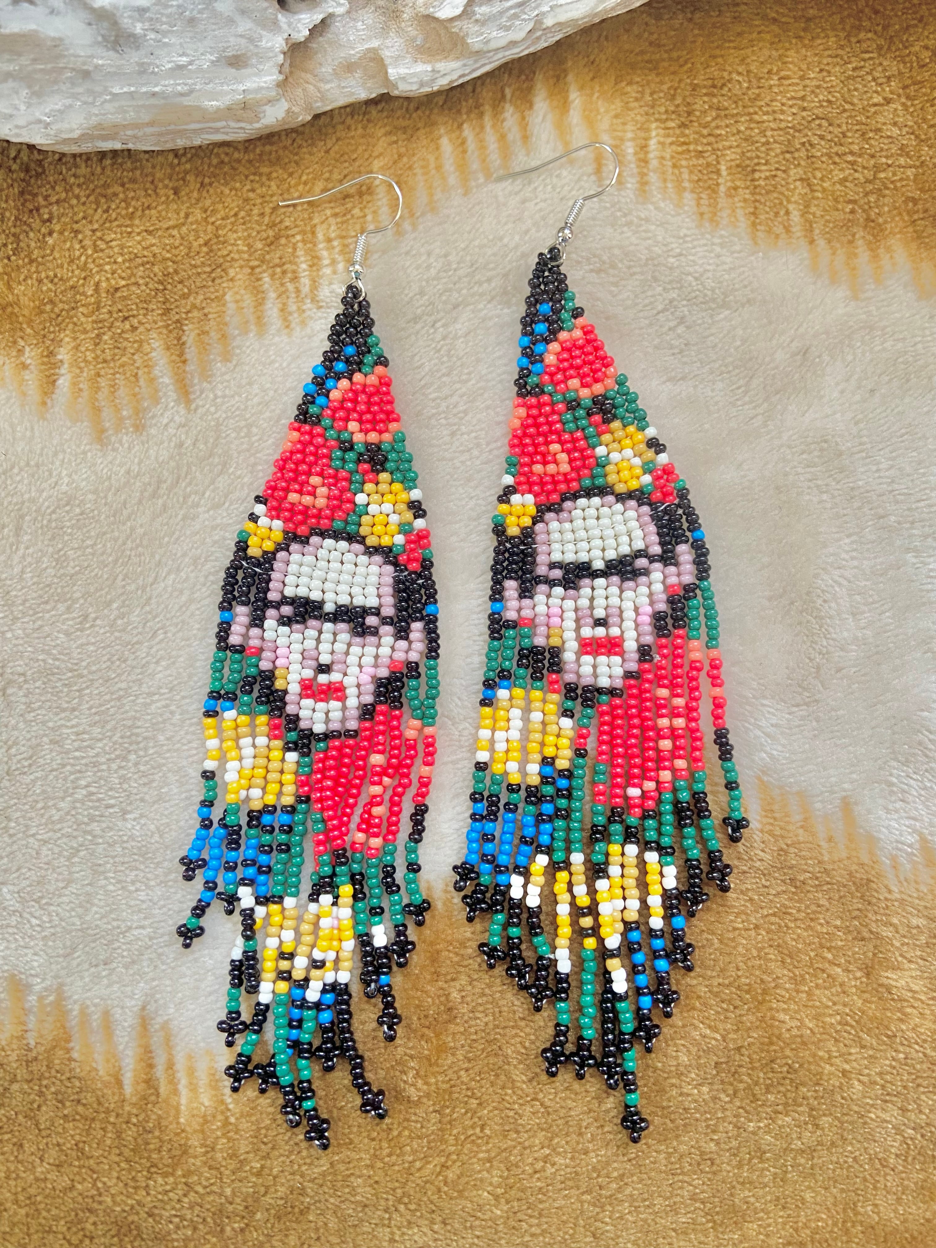 手作りの温もりが感じられるこのハンドメイドピアスは、伝統的なビーズを用いており、鮮やかな色彩が魅力的です。