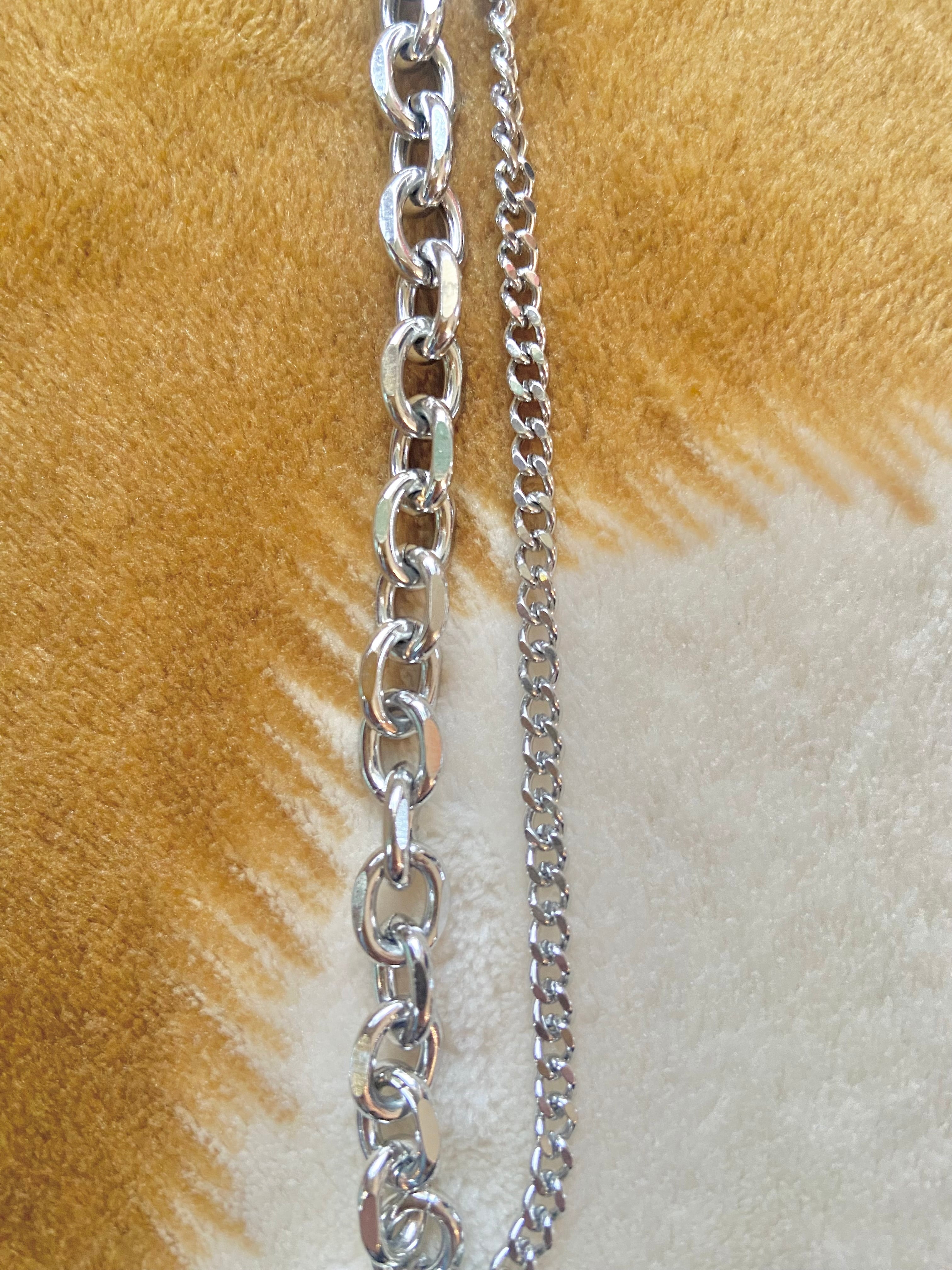 stainless double chain necklace ステンレス チェーン ネックレス 2連 ストリート シンプル