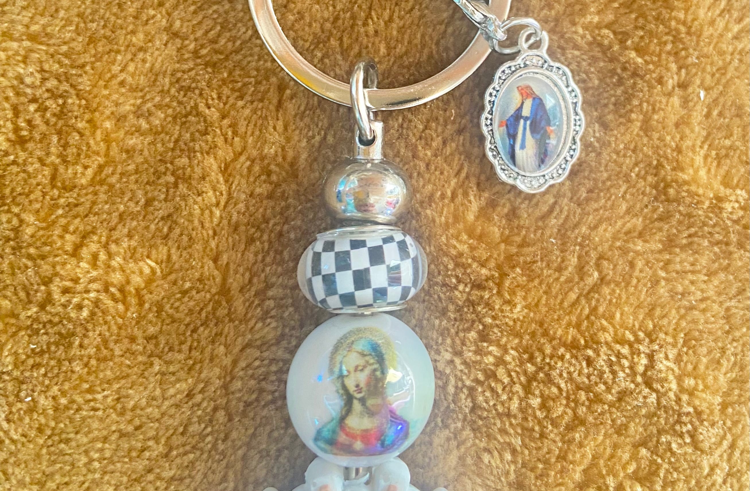 美しいメキシカンマリア像がデザインされたオリジナルキーホルダーです。