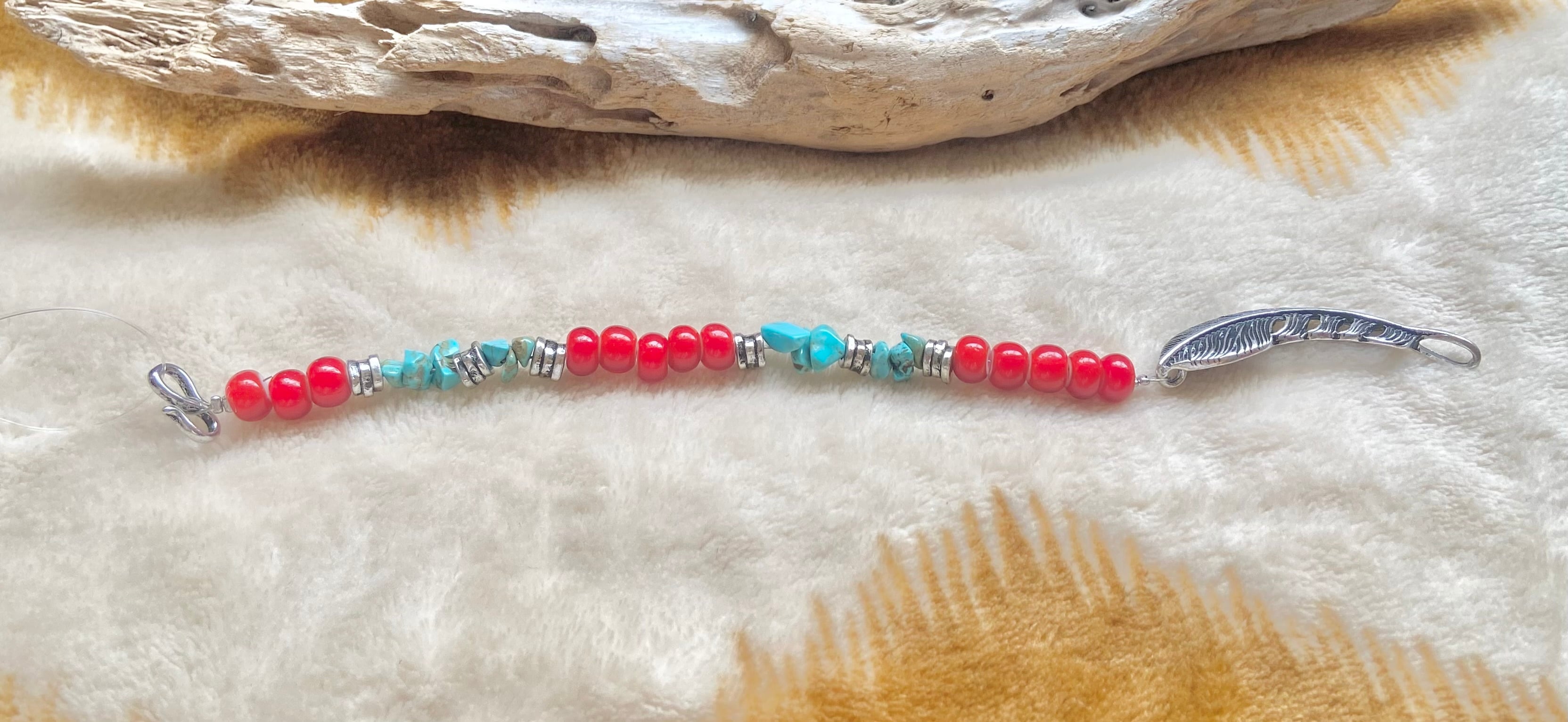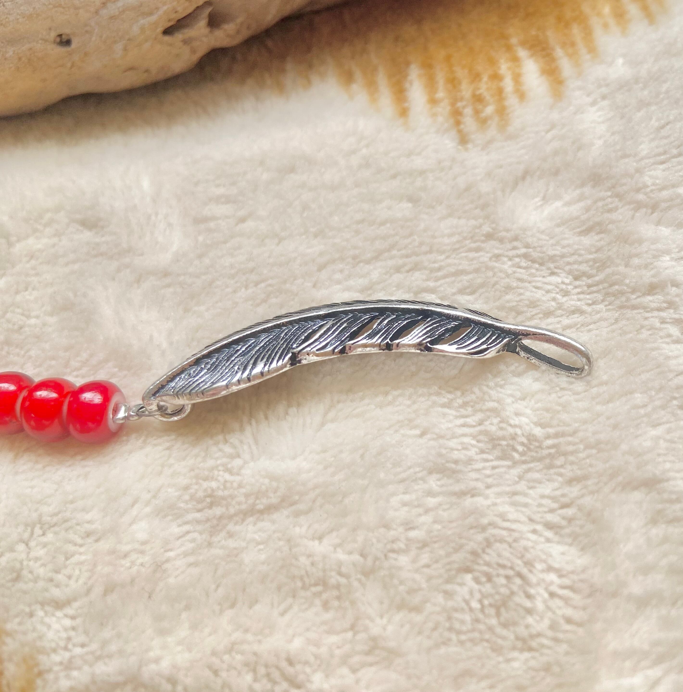 White hearts native American jewelry bracelet 003A RED ブレスレット ビーズ フェザー 古着 アメカジ