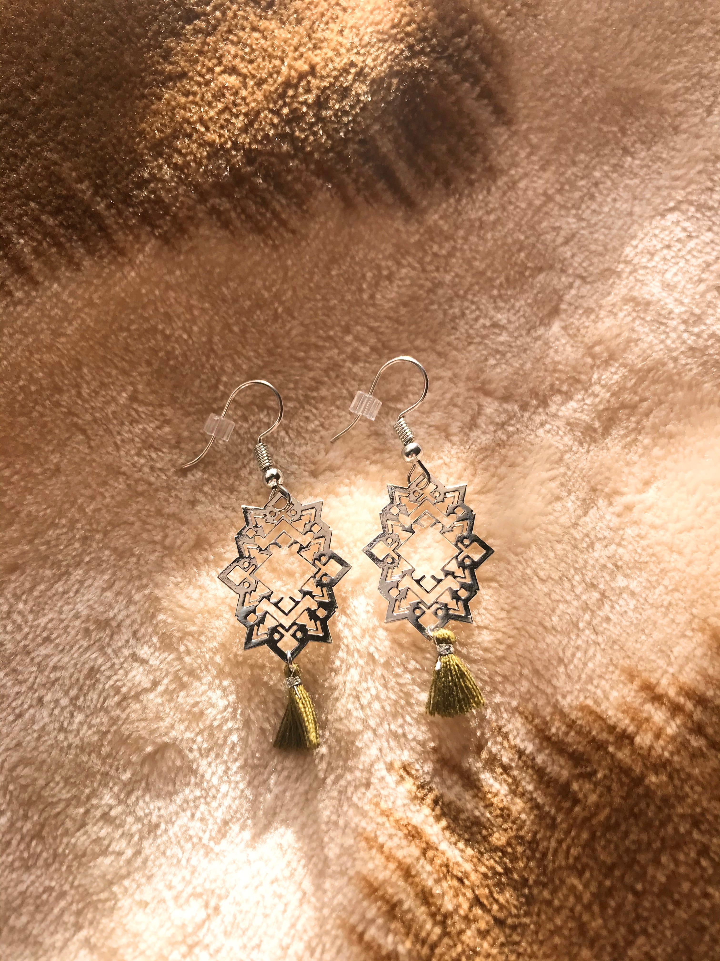 透かし模様に小ぶりなタッセルが付いたフックタイプのピアスが入荷しました!